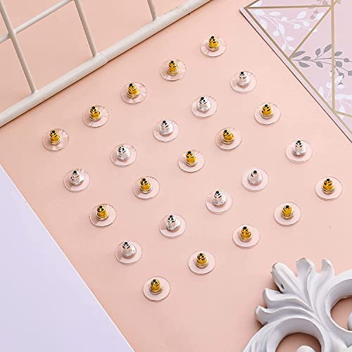 Dhruv Crafts Earring Rubber Back for Jewelry Making Push Lock & Stud Head Pin with Clear Plastic Stud Silver & Gold Pices 20 PCS Each