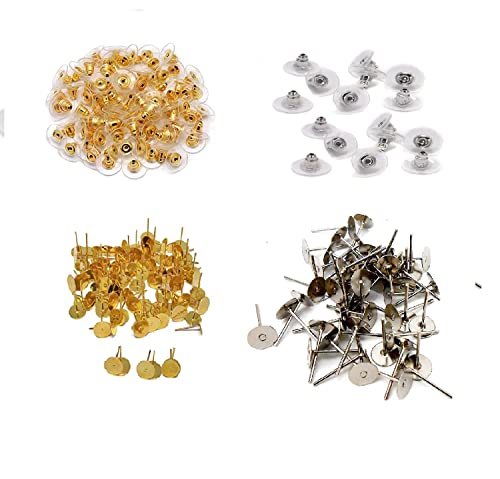 Dhruv Crafts Earring Rubber back Stud Head Pin for Jewelry Making Push Lock with Clear Plastic Stud Silver & Gold Pices 25 PCS Each jewelry making accessories jewelry making materials for necklace jewelry making materials Kit