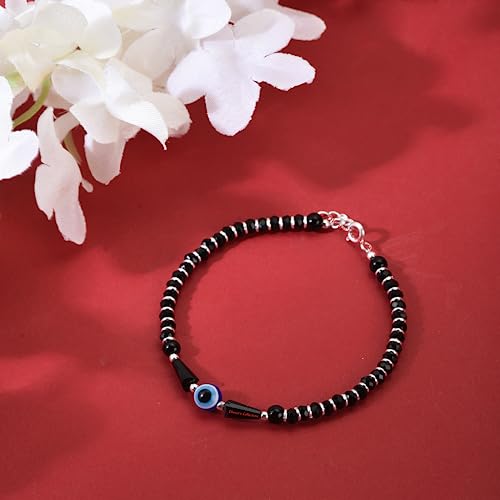 DHRUVS COLLECTION 925 Sterling Silver Evil Eye Nazariya with Black Crystals 92.5% Pure Silver Bracelet for Women & Girls