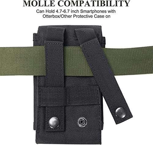 DHVAJ Tactical MOLLE Holster Army Mobile Phone Belt Pouch EDC Security Pack Carry Accessory Kit Waist Bag Case Compatible iPhone 13 Pro X XS Max XR 7 8 6/6s Plus Samsung Galaxy S10 S9 S8 Plus, Black