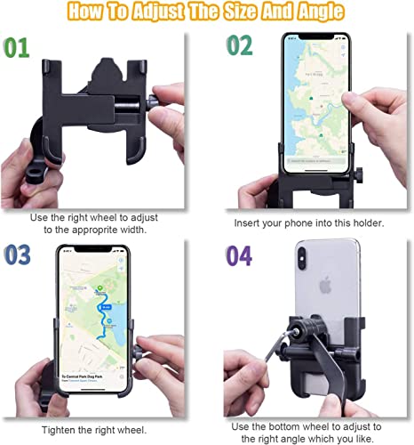 STABLE AND SAFE – Rotate the side screws as advised to hold your phone tight, the rubber strips will protect your phone and handlebar from being scratched.
