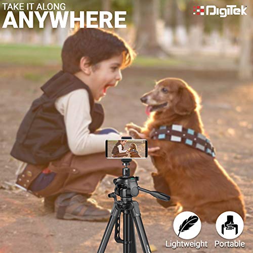 Digitek DTR 550 LW (67 Inch) Tripod For DSLR, Camera | Operating Height: 5.57 Feet | Maximum Load Capacity up to 4.5kg | Portable Lightweight Aluminum Tripod with 360 Degree Ball Head and Mobile Phone Holder | Carry Bag Included (Black) (DTR 550LW)