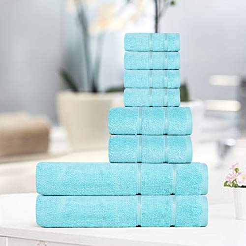 DIVINE OVERSEAS Allure Zero Twist Naturally Cotton Yarn,Extra Large,Elegantly Plush (8 Piece Family Towel Set, Fresh Aqua)