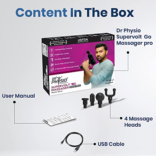 Dr Physio Supervolt Go 1023 Pro Cordless Rechargeable Portable Massager for Deep Tissue Muscle Massage, Body Relaxation and Pain Relief- (Matte Black) …