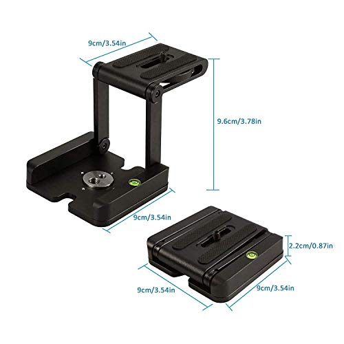 Built-in bubble head to adjust horizontal position and 3-way head with adjustable pan to allow for tilt and swivel motion with portrait or landscape options