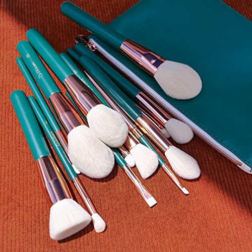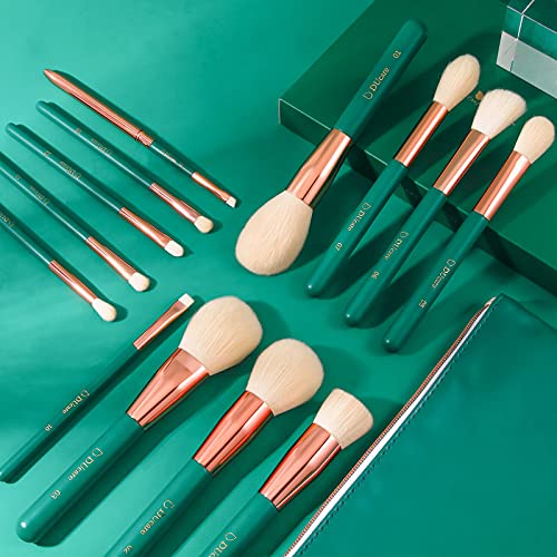 DUcare Makeup Brush Set Green 13pcs Makeup Brushes With Case Premium Synthetic Kabuki Foundation Blending Face Powder Mineral Eyeshadow Make Up Brushes Set With Bag