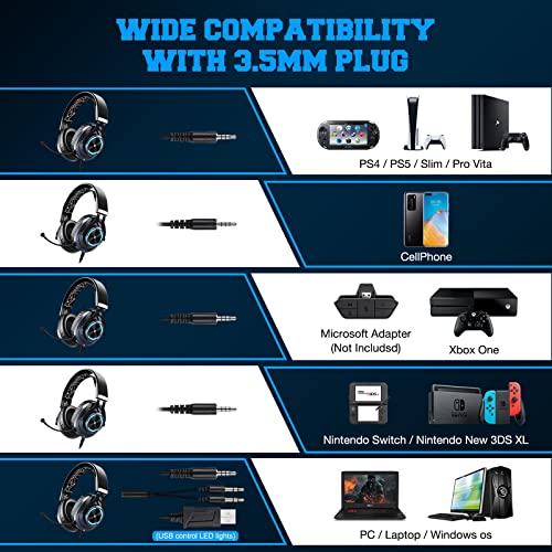 MULTI-PLATFORM COMPATIBILITY: EKSA gaming headset works great with all NEW Xbox One controllers, PlayStation 4, Nintendo Switch, and compatible Phone/Tablet devices with a 3.5mm connection, Windows XP, Vista, 7, 8, and 8.1. [Please note that you need an extra Microsoft Adapter (Not included)if you own an old version Xbox One controller].