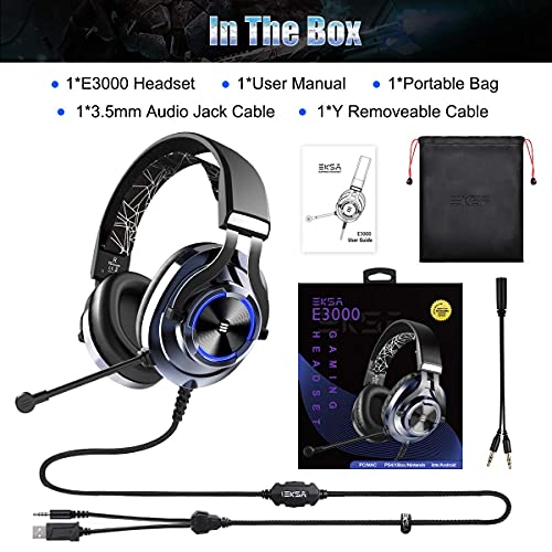 EKSA professional gaming headset, with high sensitive microphone and noise reduction tech, reduces distracting background noise, to collect your voice clearly. Easy-to-use volume adjustment and one key Mic mute switch, easy for your game operation.