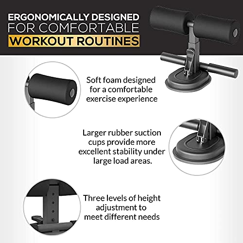 GREATER STABILITY – The abs workout sit up assistant device’s large single-suction cup which measures 5.7” x 4.5” is made from extra-thick rubber and offers a load capacity of up to 198 lbs.