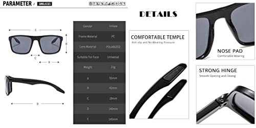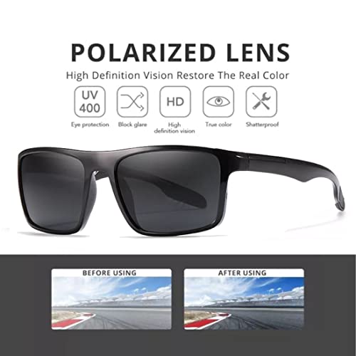 This ultra light rectangular sunglass for men provides 100% Protection Against Harmful UVA/UVB & UVC Rays. This pair of men sunglasses with the TAC polarized lenses can eliminate glare and reduce eye fatigue. 100% UV400 protection. Perfect for outdoors(such as driving,fishing,etc), and it also can be used as a high fashion accessory and daily wear all year round