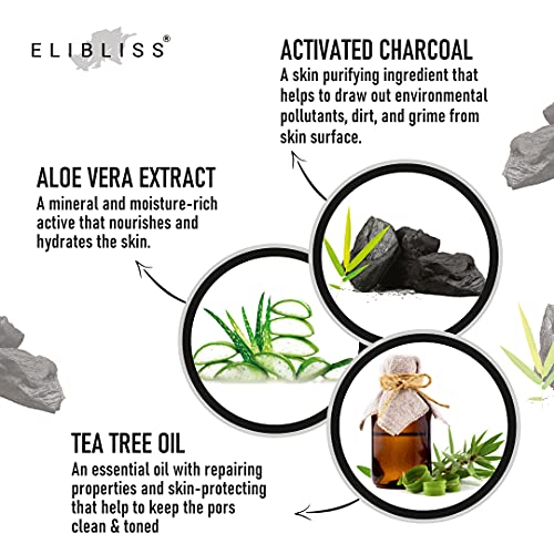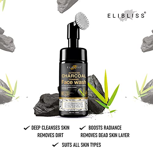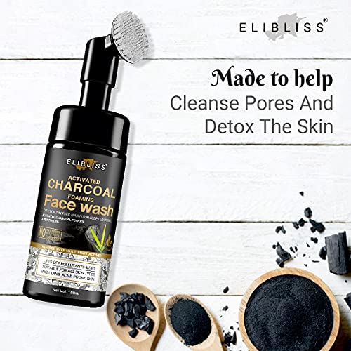 Elibliss Charcoal Foaming Face Wash with Built-In Face Brush for Deep Cleansing – No Parabens, Sulphate, Silicones & Color