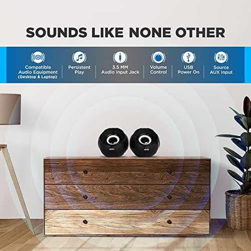 Elista ELS-Mini 6W Portable Laptop/Desktop USB 2.0 Multimedia Speaker with AUX Input, 3.5mm Audio Input (Black)
