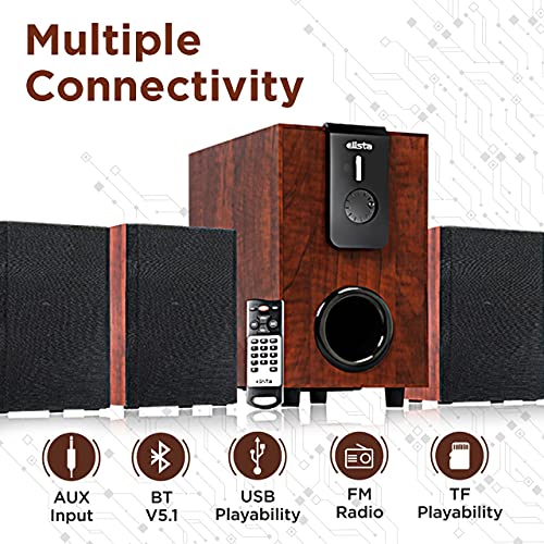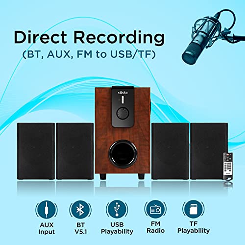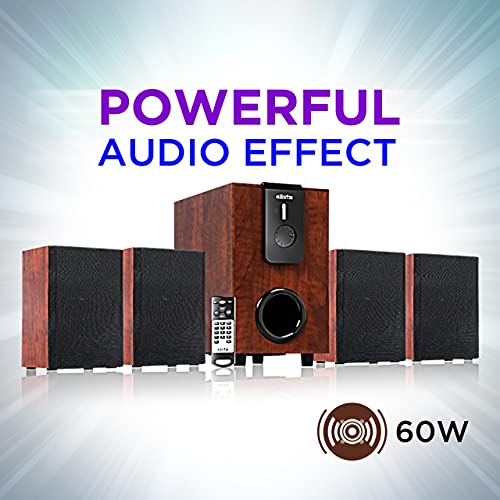 Elista Pearl 4.1 Channel Multimedia Speaker with Bluetooth/USB/FM/Aux/TF | 60W | with Remote, Brown