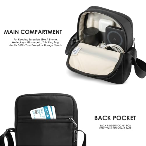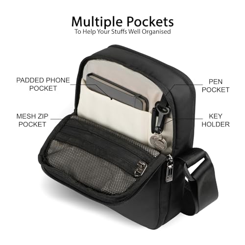 ELMIRA small sling bag for men and women, Mini passport travel side bags for mens, collection hand messenger pouch, man waterproof handbag for mobile, cash, and wallet (9 Inch, Black)