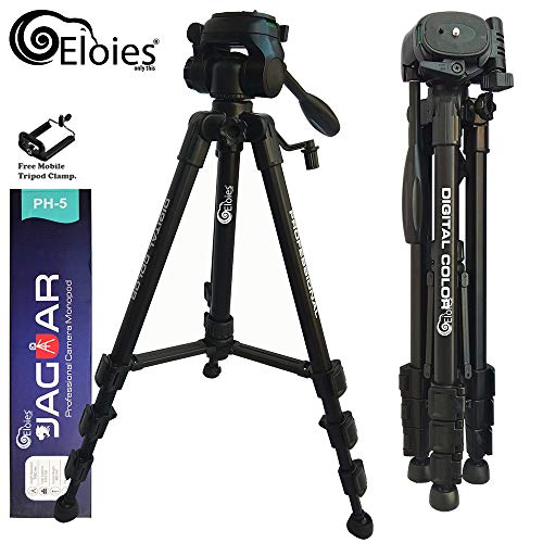 Lightweight Solid & Sturdy – Built with premium aluminum tube (max. dia. 23mm) & precision-injected plastic pan head & flip-lock knobs, Eloies video phone camera tripod is built to last in rugged use. Tripod weight 1.1Kg, max. load 2.3-5 Kg.