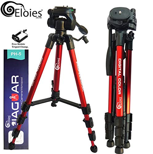 Eloies® Travel Series TL-59 Aluminum Tripod Stand for Mobile Phone and DSLR Digital Camera 57″/4.7Feet | Lightweight Compact Size Travel Tripod Max Height with Mobile Holder (RED)