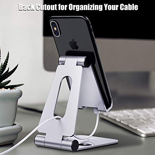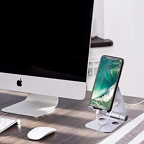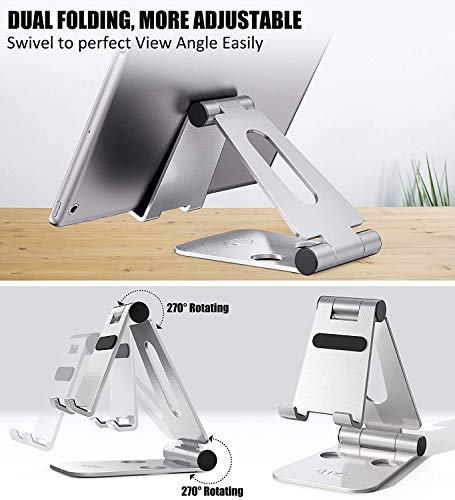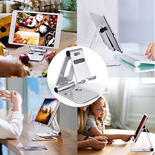 Elv Aluminium Adjustable Mobile Phone Foldable Holder Tabletop Stand Dock Mount for All Smartphones, Tabs, Kindle, iPad (Moonlight Silver)
