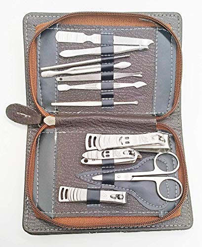 Generic Name : 9-in-1 Stainless Steel Manicure & Pedicure Traveling Grooming Personal Care Nail Tools Kit (Random Prints) comes with a soft & handy pu leather pouch/ case holder Complete, compact & portable