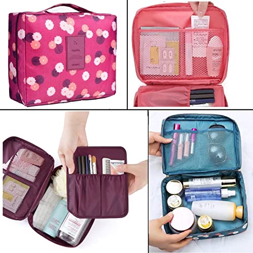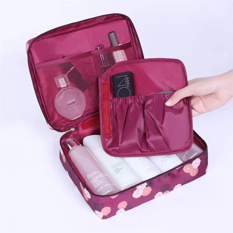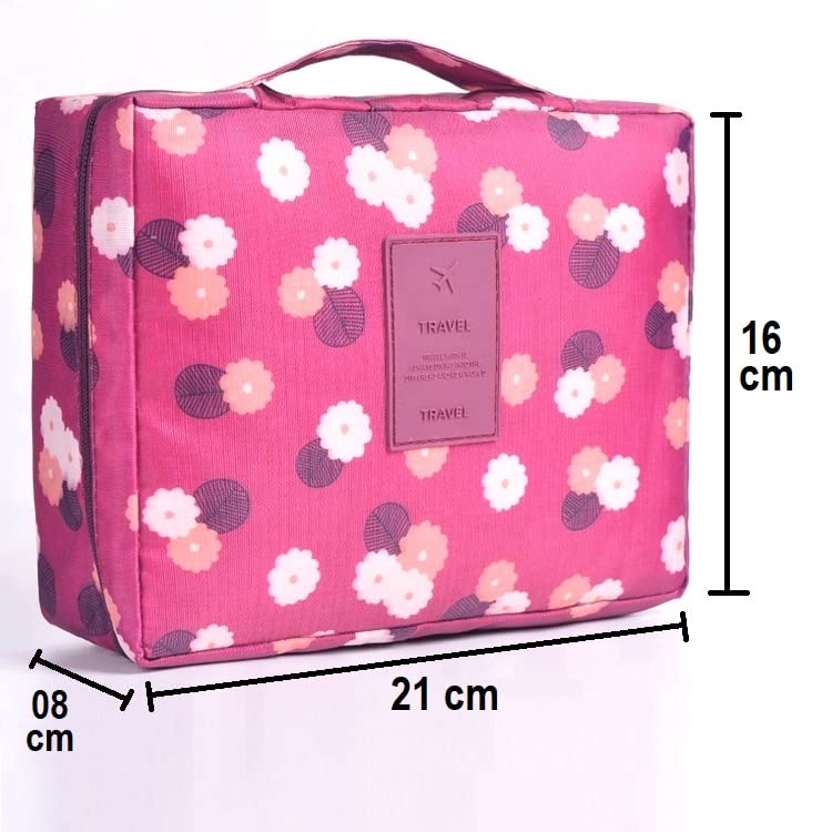 ERHETUS Multipurpose Travel Cosmetic Makeup Pouch | Multi Pockets Toiletry Bags & Travelling Pouches for Girls | Inner Ware Storage Organizer & Wash Bag for Women – Maroon Flower (Size: 21x16x08 cm)