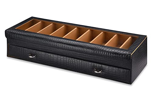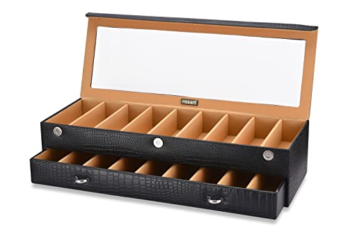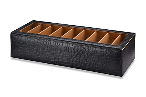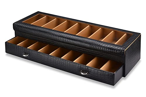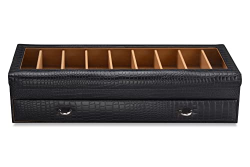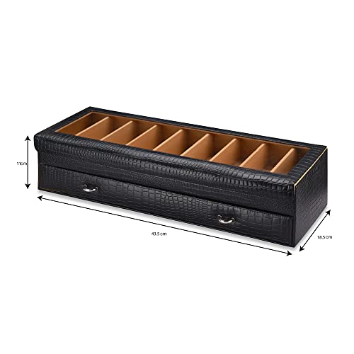essart (Sarvika Faux Leather Croro-Finish-Print Sunglasses case for 18 Sunglasses,Double Storey Magnetic Closure sunglasses box organizer, Transparent lid Feature – 60003-B-Black