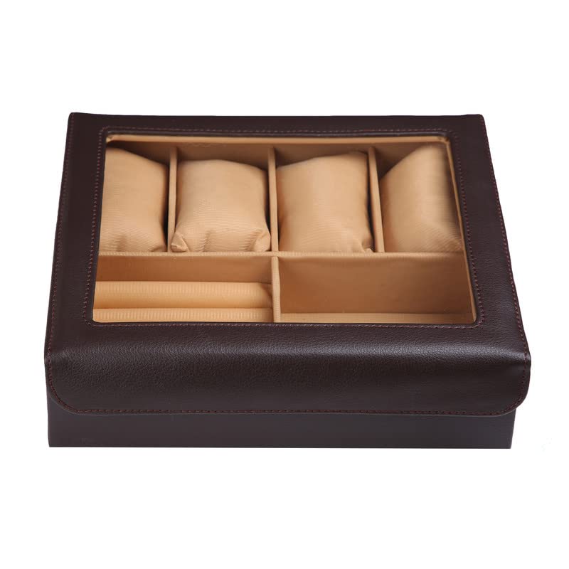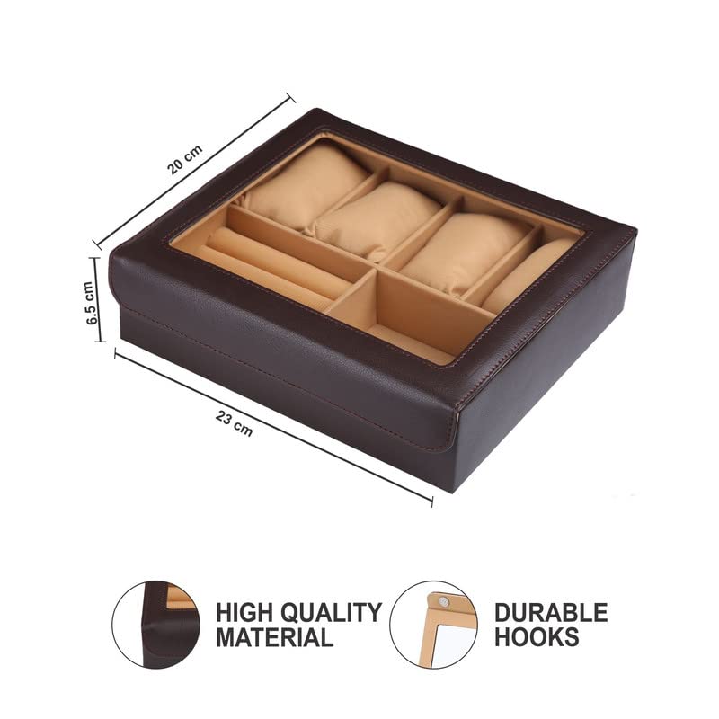 Essart (Sarvika Faux Leather Suede Finish Jewellery/Trousseau/Vanity/Cosmetic/Multi-Purpose Makeup And Cufflinks Box/Watch Box Wc-4-Brown