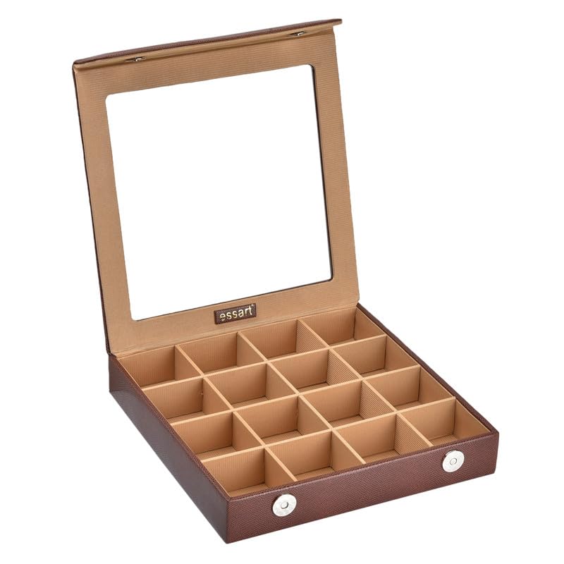 Essart 16 Slots Jewellery Box, Earring Organizer Box, Jewellery Makeup Vanity Mutli Purpose, Makeup & Cufflinks Box, Cufflinks Box Vanity Jewellery | Colour -Snakebit Brown