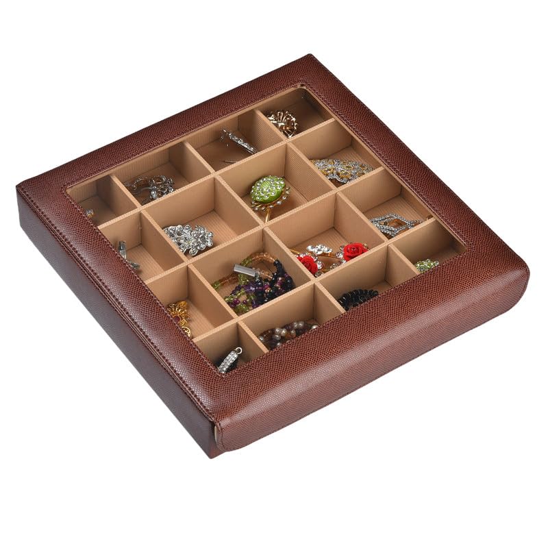 essart sarvika PU Leather 16 Slots Jewellery Box, jewellery box organizers, glass jewellery box, Earring Organizer Box, Jewellery Case, (10080-Snakebit Brown)