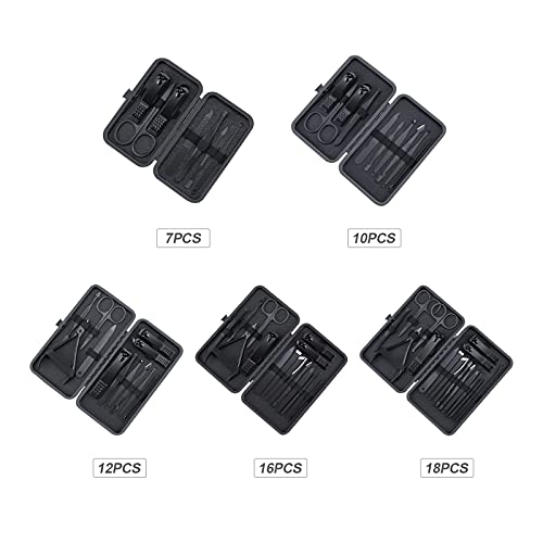 Description: e prof ional mani kit contains nail and toenail tools, multifunctional include hand care, facial care, foot care, etc. Made of prof ional stainl steel, hard and du ble easy to cut e nail. Features: [Sto ge Case]Mani set comes wi a portable syn etic lea er case at is easily o ned wi a push of a button. [Easy to Carry]You can put e nail art acc ories sets tools into your fashion bags, lightweight and Handy when you go t veling. [Premium Material]All e tools are made of qu stainl steel, never rusts, extreme hardn , du ble for long term use. [Great Gift]S lish and functional good, great gift for husband, boyfriend, br , and women girl. [Useful] e mani set has a varie of functions including hand care, foot care, and facial at can meet all kinds of care needs in daily life. S cifications: Qu : 7PCS/10PCS/12PCS/16PCS/18PCS (Optional) Color: Bla Material: Stainl Steel S le: Fashion Application: Nails Oc n: Ba room, T vel, Salon Pa age Size: 10.5*6.5*1.9 /4.13*2.55*0.74inch(7PCS); 12.2*7.9*2 /4.8*3.11*0.78inch(10PCS); 15.4*8.5*1.5 /6.06*3.34*0.59inch(12PCS); 15.3*9.5*1.6 /6.02*3.74*0.62inch(16PCS); 15.3*10*1.8 /6.02*3.93*0.7inch(18PCS) Pa age Weight: 117g/0.25lb(7PCS);137g/0.3lb(10PCS);227g/0.5lb(12PCS);257g/0.56lb(16PCS);273g/0.6lb(18PCS) Pa age List: 1 * Mani Set