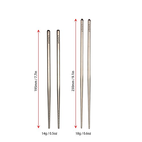 EXCLUZO Pair of Titanium Lightweight ULT Reusable Chopsti s wi Carrying Bag Camping Gear Outdoor 195mm/230mm
