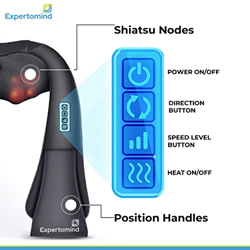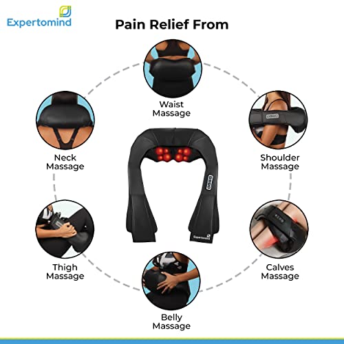 Expertomind Cervical Massager for Neck & Shoulder Pain Relief | Shiatsu Body Massager With Infrared Kneading Nodes | Relieves Muscular Tension & Stiffness | Electric Powered | Variable Intensity