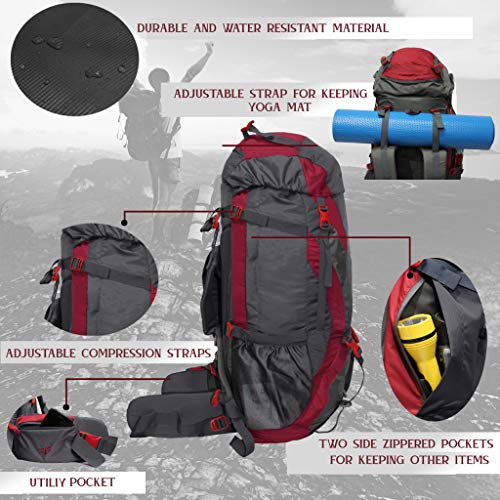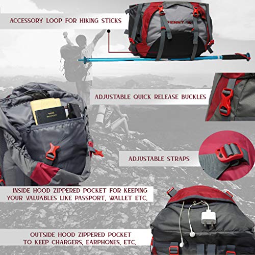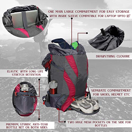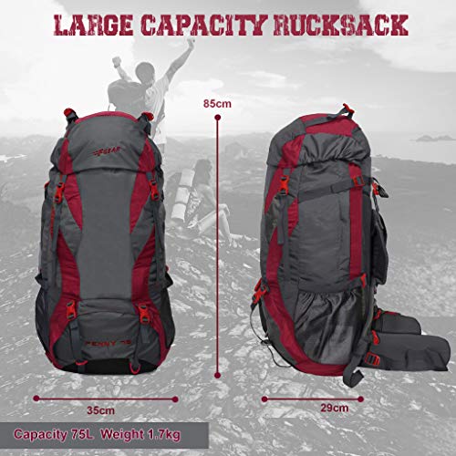 Introducing the F Gear Penny Red Grey 75L capacity rucksack which is skillfully fabricated for adventurous encounters. This large back pack will prove to be your most- reliable friend on the trails by safeguarding your travel gear and granting you ease. To describe it briefly here are the following points: 1. This Rucksack is made up of polyester material which is known for its hyper water resistant & ultra durability. Fabric is treated to make it water resistant. 2. This Rucksack comes with a hidden security pocket at the hood which protects your wallet, phones, etc. 3. Apart from this it has 1hugecompartment for easy storage & one inside sleeve suitable for the biggest Laptop possible. 4. This Rucksack is equipped with padded adjustable shoulder straps, a hip strap that smartly distributes the weight evenly, adjustable accessory straps for carrying yoga mat. 5. This rucksack comes with a compression straps on both sides for snug fit. 6. This Rucksack has two huge Anti-tear bottle nets on both sides, two side utility pockets for keeping valuables & D-Ring for hanging key chains, shoes & other gears. 7. This rucksack comes with a shoe/helmet compartment on the bottom of the rucksack. 8. This backpack has a top cover quick release buckles with an adjustable ice axe holder & utility D-Ring for hanging key chains, shoes & other gears. 9. The base is padded for the safety of the laptop & other gear. 10. Pocket with Rain Cover present on the base of the bag.