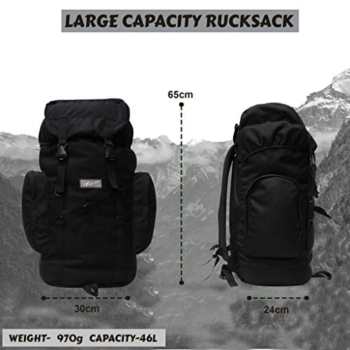 Introducing the F Gear Platoon rucksack 46L capacity backpack which is skillfully fabricated for adventurous encounters. This large backpack will prove to be your most- reliable friend on the trails by safeguarding your travel gear and granting you ease. To describe it briefly here are the following points: 1. This backpack is made up of polyester material which is known for its immense strength & durability. Fabric is treated to make it water resistant. 2. This backpack comes with two big sided zippered pockets, one zippered pocket the hood for easy access to accessories & one drawstring closure of the main compartment, doubly secured with SR clamp buckles with to hold the valuables. 3. This backpack is equipped with padded thin adjustable shoulder straps for easy comfort & a hip belt that smartly distributes the weight evenly 4. This backpack comes with a breathable air mesh at the back for easy comfort & MOLLE loops above the hood used as load carrying equipment. 5. This backpack comes with an adjustable ice axe holder & utility D-Ring for hanging key chains, shoes & other gears. 6. This bag has durable base for the safety of the other gear.