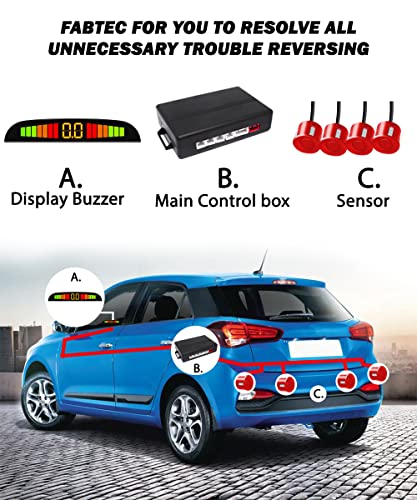 Fabtec Car Reverse Parking Sensor with LED Display, Buzzer and Ultrasonic Reverse Parking Auto Radar Detectors (Red)