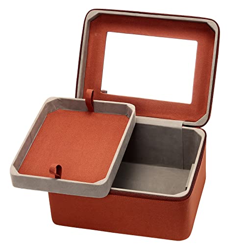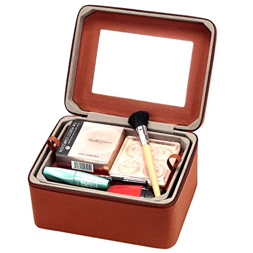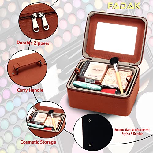 FADAK Makeup Cosmetic Box for Wedding Makeup Box Jewelry Bridal Box Trousseau Box Vanity Beauty Case Large Vanity Box Vanity Bag with Dividers for Brushes Travel Cosmetic Organizer Bag (Brown)