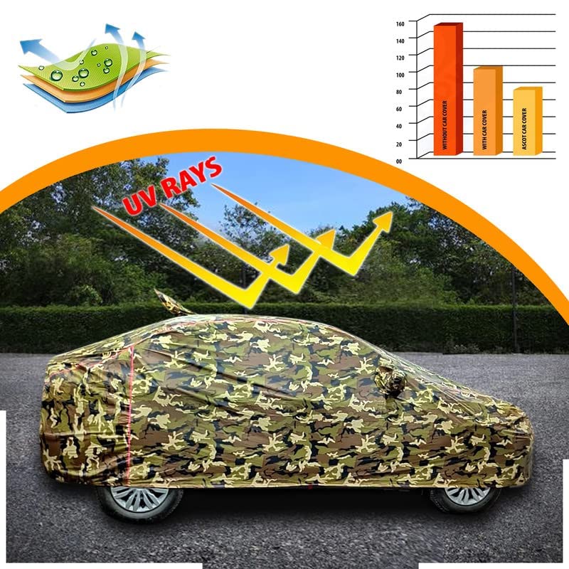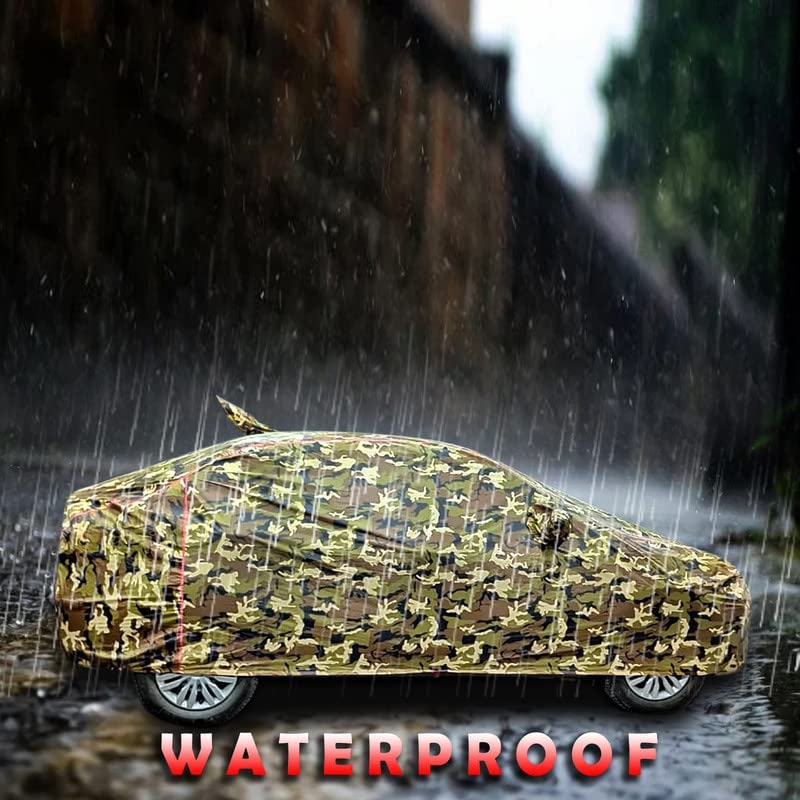 FAMEXON Waterproof Car Body Cover Compatible for Eco Sport Triple Layer Fabric with Mirror Pockets Inner Foam and Pipein Design Protects from Animals, Heat, Rain & UV Rays (Jungle Print)