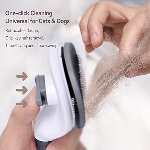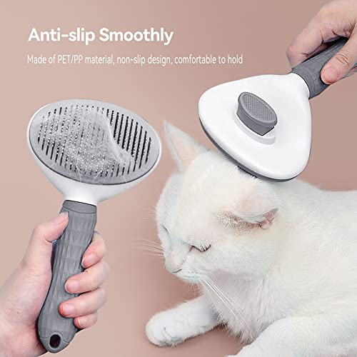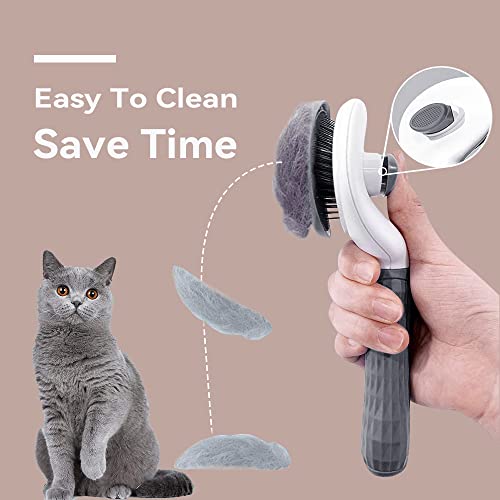 Feeko Dog Brush Pet Grooming Brush Slicker Dog Comb Self Cleaning Brush Comb for Dogs Cats Puppy Pet Accessories, Hair Shedding Brush for Dogs Pet Care Comb (Grey)