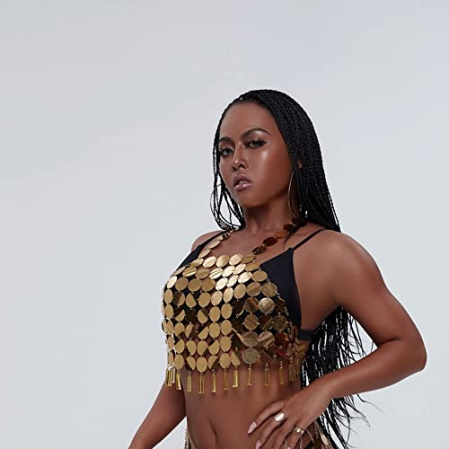 Femnmas Coin Sequins Bra Chain Gold Crop Top Body Chains Backless Beach Nightclub Body Accessories Jewelry for Women and Girls