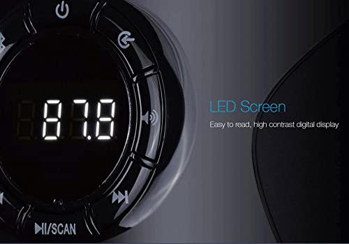 Bright white LED display with good view angle, Full, clear sound with powerful bass