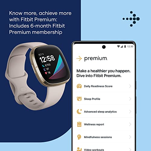 Fitbit Sense Advanced Smartwatch with Tools for Heart Health, Stress Management & Skin Temperature Trends, White/Gold, One Size (S & L Bands Included)
