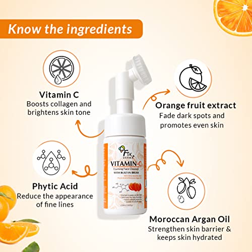 Fixderma 2% Vitamin C Face Wash, Foaming Face Cleanser with Brush, Face wash for Women & Men, Evens skin tone, Reduces fine lines & wrinkles, Exfoliates the skin – 100ml