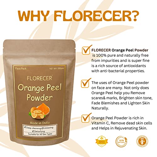 Florecer Orange Peel Powder For Skin | Face Pack | Oil Control | Tan Removal | Acne And Pimpes | Scars | Glowing Skin | Natural Skin Cleanse With Vitamin C | Organic | Skin Whitening- 100 Gram
