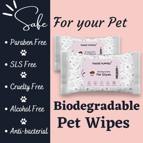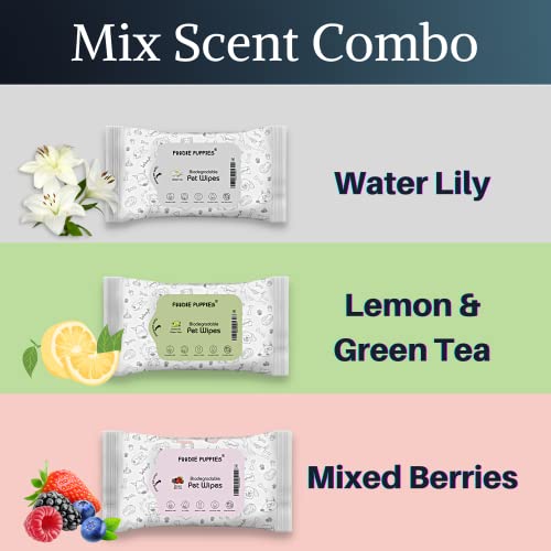 Foodie Puppies Biodegradable Anti-Bacterial 60pc (10 Wipes Each x Combo of 6) Pet Wet Wipes for Dogs | Puppies | Cats | Kittens | Rabbit & Small Animals | Fresh Water Lily + Mixed Berries + Lemon & Green Tea Scent | Pocket Friendly | SLS Free, Paraben Free & Cruelty Free