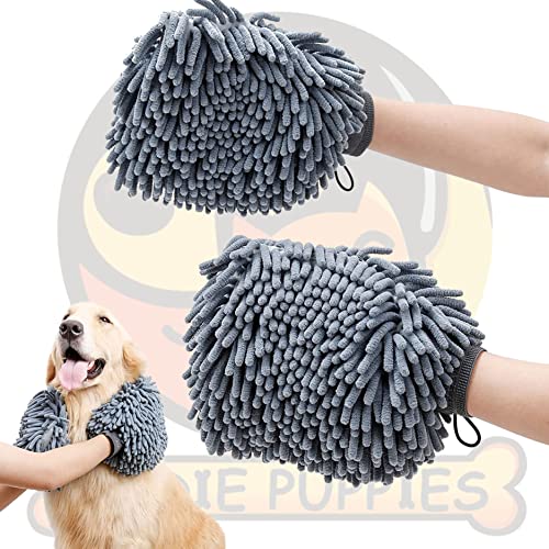 Foodie puppies chenille microfiber pet towel glove. you can share these puppy towel mitts with your partners, neighbors, and relatives who have pets at home, these towels mitt are practical and thoughtful gifts for them. Keep your messy mutt happy…Keep your home clean. Here is your solution to messy mutt paws and coats. Clean and dry your dog before the mess finds its way to your home, car, clothes, etc. Absorbing 7 times its weight in water, the microfiber on this mitt is also a soft and snuggly treat for your pet. Soak up multiple times the glove’s weight of water with this super absorbent mitt. Like a sponge, when the mitt fills with moisture, simply squeeze it out and continue wiping down your dirty/wet pup. Help dry your pup’s paws while containing the mess. Microfiber has a natural attraction to moisture, dust, and dirt particles, so the mess stays in the mitt and not on your floor. Perfect tool to have on hand when your mutt comes inside after rain or snow, or even in the bath to help shampoo your pooch.
