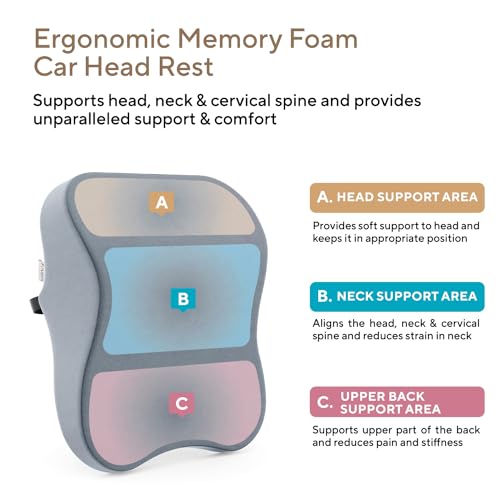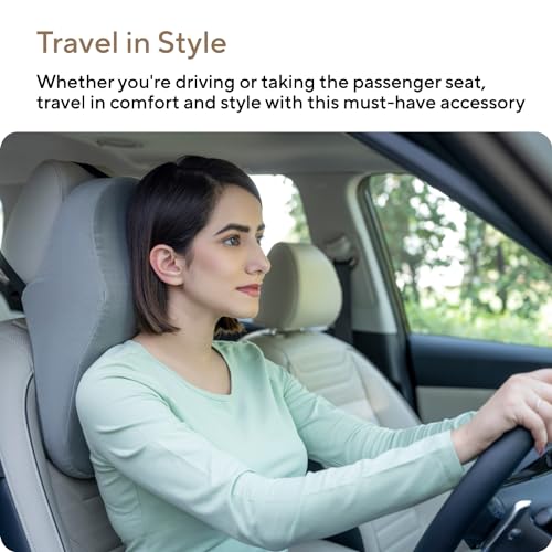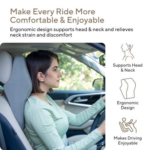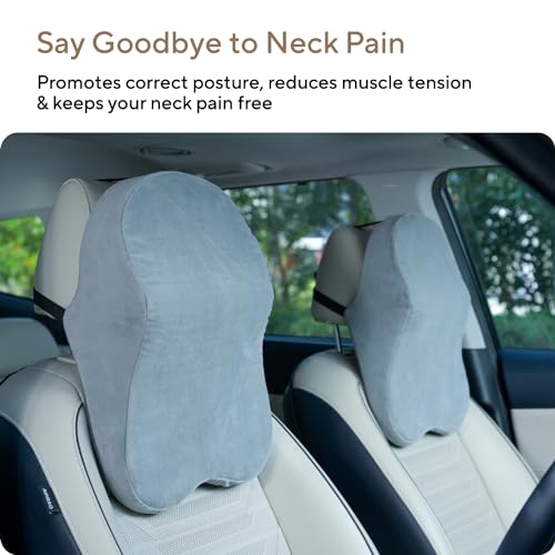FOVERA Car Neck Rest Pillows – Memory Foam Car Seat Head Rest Pillow for Neck and Cervical Support – Neck Pillow for Car – Relieves Neck Pain & Muscle Tension (Large, Grey, Pack of 1)