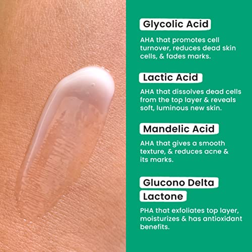 Reduces Blackheads & Whiteheads: AHAs and PHAs work miracles on reducing white & blackheads. It also diminishes the appearance of tiny bumps. They exfoliate your skin deeply to dissolve dead skin cells and excess sebum.