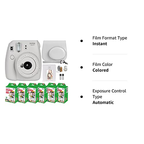 FujiFilm Instax Mini 9 Instant Camera + Fujifilm Instax Mini Film (60 Sheets) Bundle with Deals Number One Accessories Including Carrying Case, Selfie Lens, Photo Album (Smokey White)
