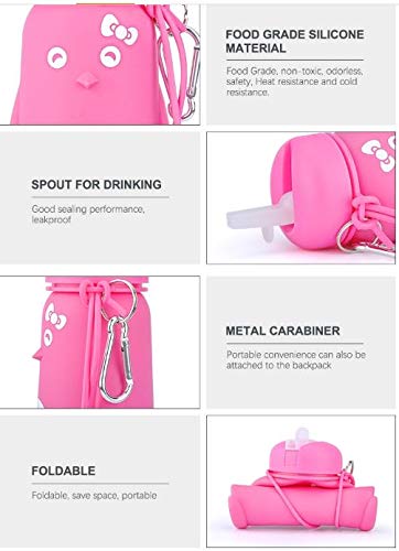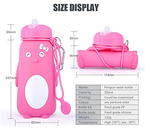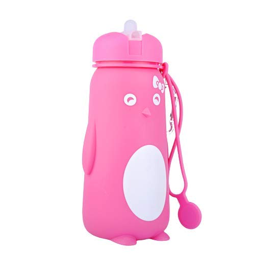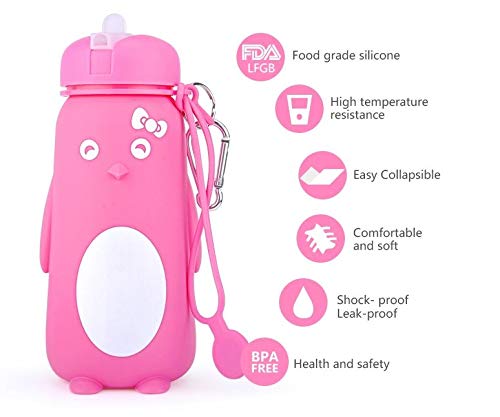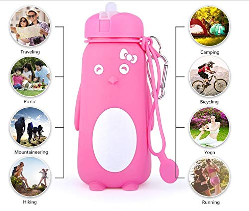 Funberry® Penguin Foldable Silicone Water Bottle, Reusable Leak Proof Sipper for Kids, Teens and Women, Portable for Outdoor Camping Hiking Office Gym Sport Travel School, BPA Free, 550ml
