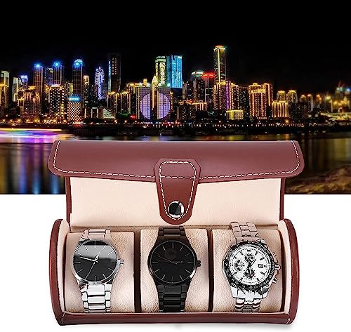 Furret Watch Roll, 3 Grids Cylinder Watch Roll Holder Wristwatch Display Case Jewelry Gift Storage Box