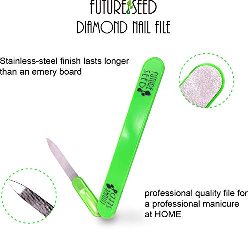 FUTURESEED Diamond Nail File Crafted From Polished Steel Durable & Lasts Longer & Washable 5.8 inch, at Home or Travel Pedicure Manicure Kit for Natural & Acrylic Nails