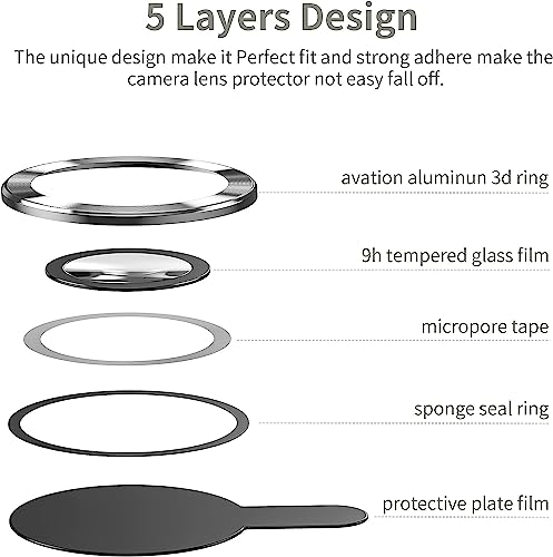[Anti-Drop, Anti-Scratch and Anti-Vibration Protection] The aviation Tempered Glass metal ring and 9H tempered glass camera protector resist your iPhone from huge impacts and drops from external forces. The seal ring is designed to provide water, oil, and dust protection for your phone’s lens.